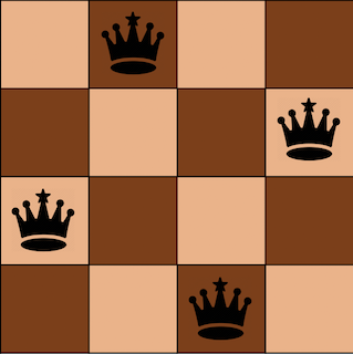 The n-queens puzzle is the problem of placing n queens on an n×n chessboard such that no two queens attack each other.